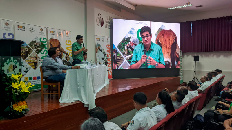 El Director General Ejecutivo del Servicio Nacional de Sanidad Agropecuaria e Inocuidad Alimentaria (SENASAG), Dr. Javier E. Suárez Hurtado, a tiempo de brindar el informe de Rendición Pública de Cuentas Inicial - 2024, destacó que se tiene proyectado el control progresivo de enfermedades, apertura de nuevos mercados internacionales, construcción y equipamiento de laboratorio entomológico, construcción de Bioplanta de Producción e Irradiación de Mosca de la Fruta, moderación de la tecnología y ejecución de políticas, estrategias y planes para cuidar y proteger la Sanidad Agropecuaria y la Inocuidad Alimentaria para garantizar la seguridad alimentaria para las bolivianas y bolivianos,