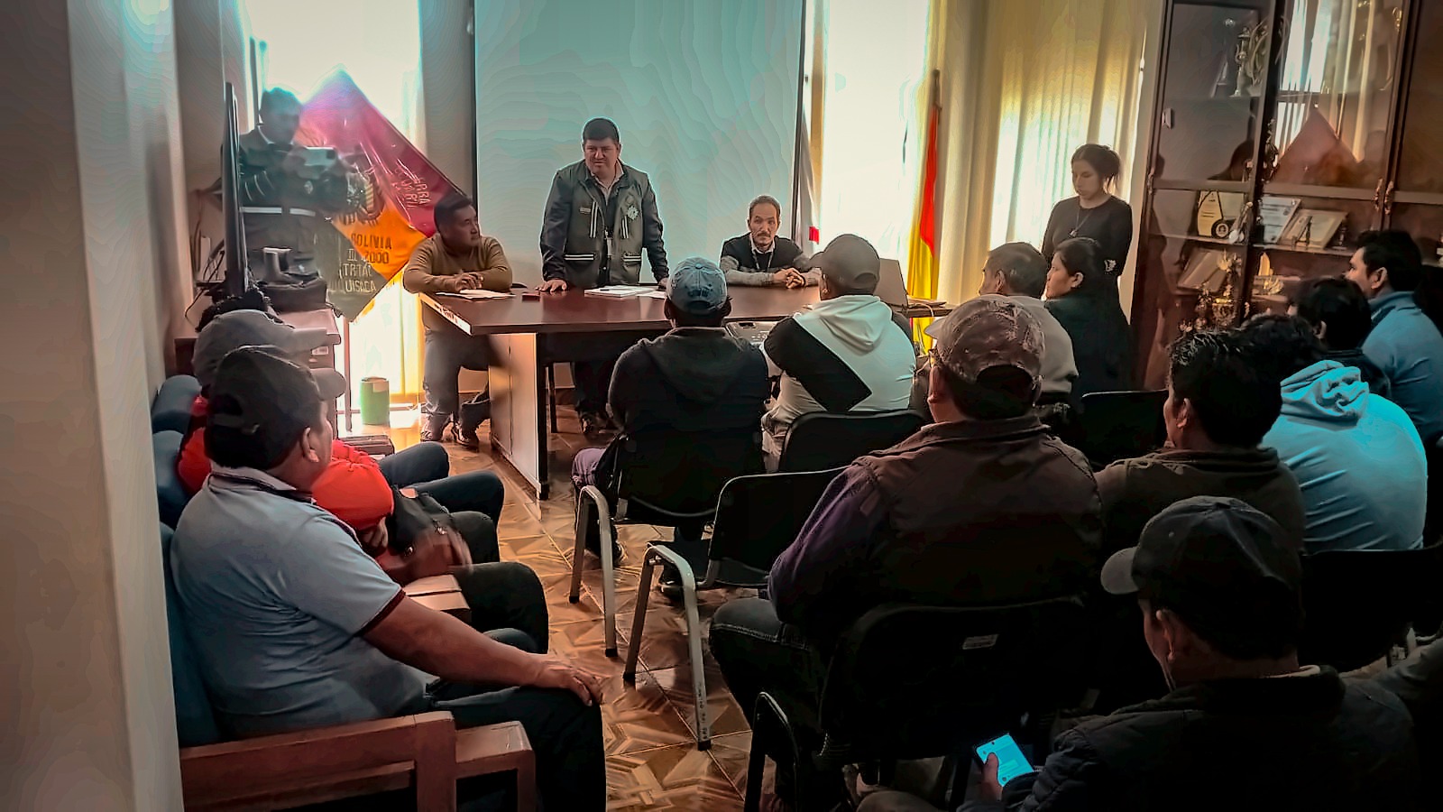 El Servicio Nacional de Sanidad Agropecuaria e Inocuidad Alimentaria (SENASAG) Chuquisaca, a la cabeza del Jefe Departamental a.i. MVZ. Armando Rentería, y el Área de Sanidad Animal, sostuvieron una reunión interinstitucional con el representante del Banco de Desarrollo Productivo (BDP) Lic. Raúl Balderas, quien brindó una explicación detallada sobre las características del fideicomiso, además de dar a conocer los requisitos para acceder al mismo, los beneficios que ofrece y el procedimiento que deben seguir los productores interesados.